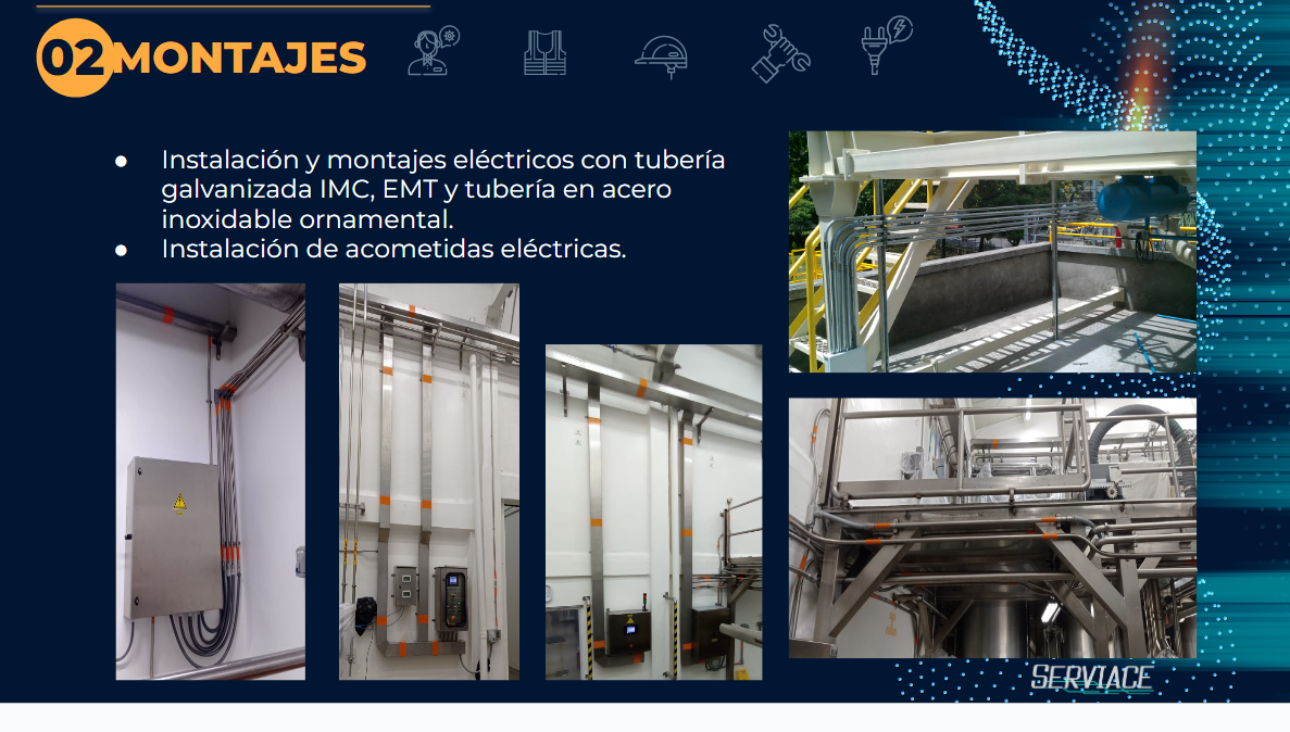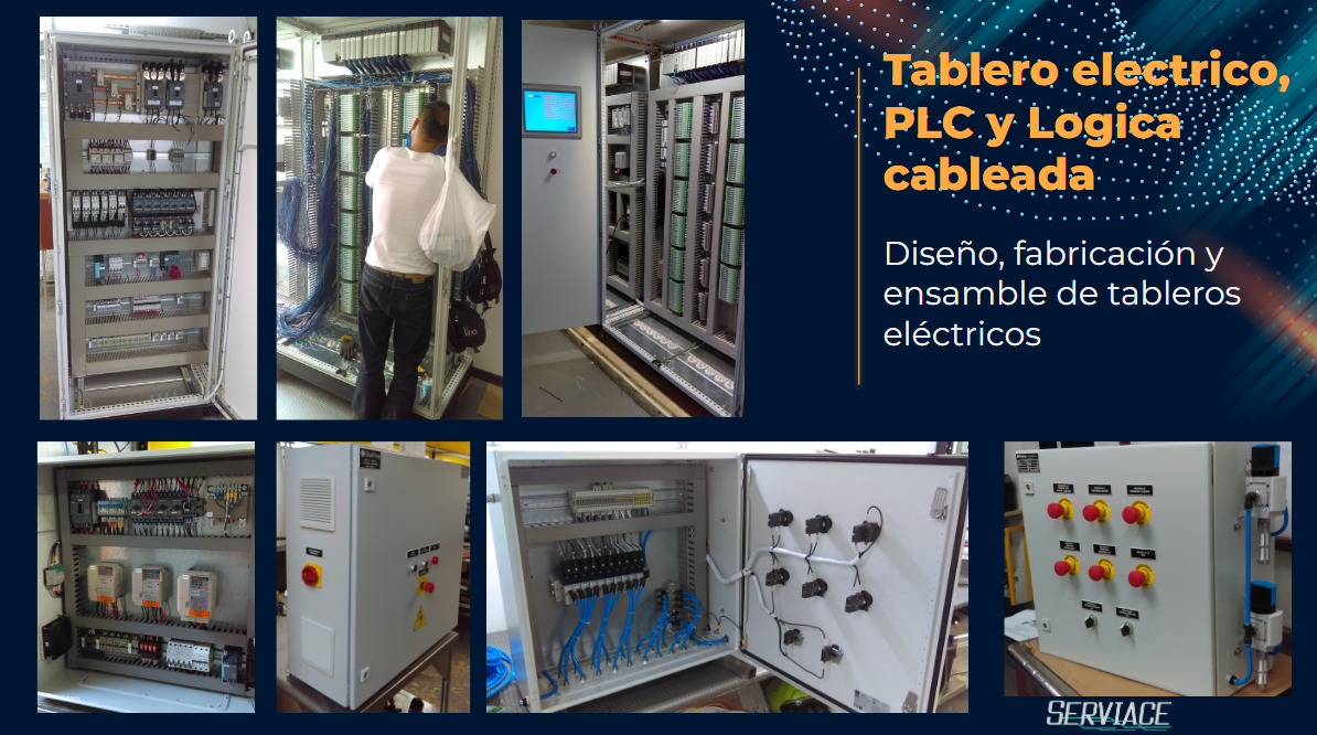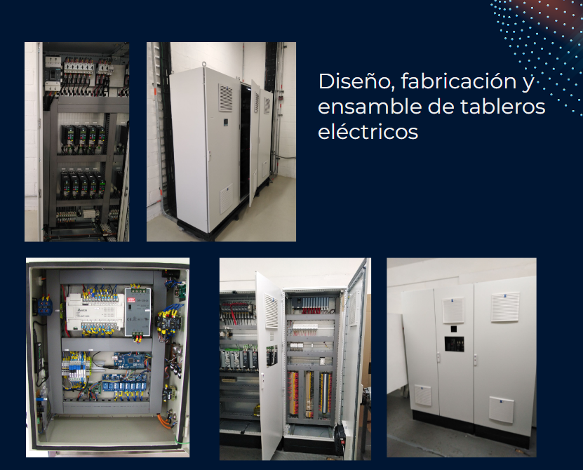 Diseños de máquinas según la necesidad, ensamble de tableros eléctricos industriales, programación de PLC y HMI en diferentes marcas, además diseño y levantamiento de planos eléctricos.